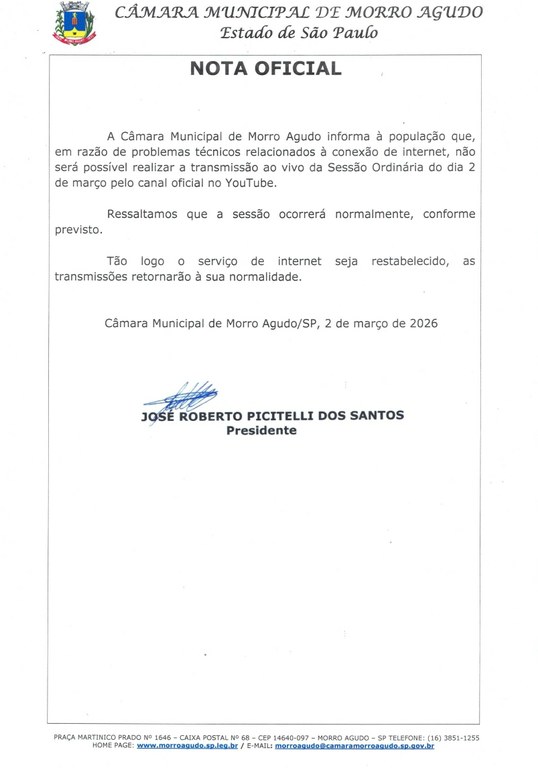 Matérias que serão discutidas e votadas na Sessão Ordinária do dia 2 de março de 2026 às 19h.